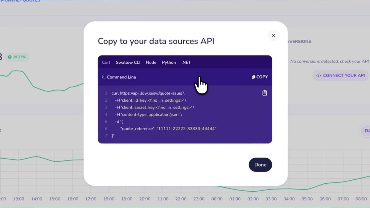 This section highlights how easily you can integrate your own APIs or internal data sources. By connecting external systems, you can combine sales metrics, conversion performance and quote behaviour into one unified view.